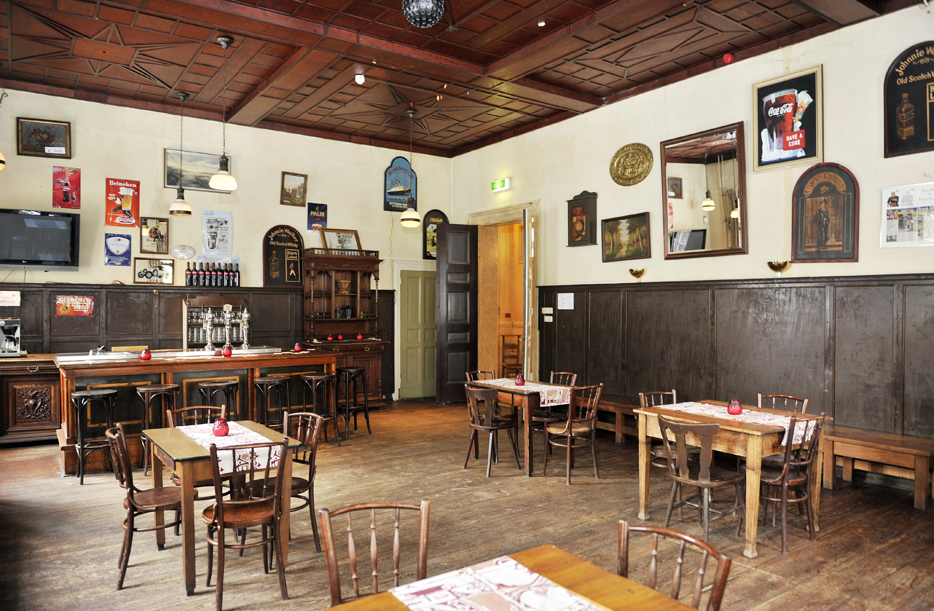 Het Grand Café is een gezellig oud-bruin café op de begane grond van het Kasteel. Het Grand Café heeft een prachtig hoog plafond, statige bar en een houten vloer.